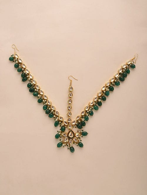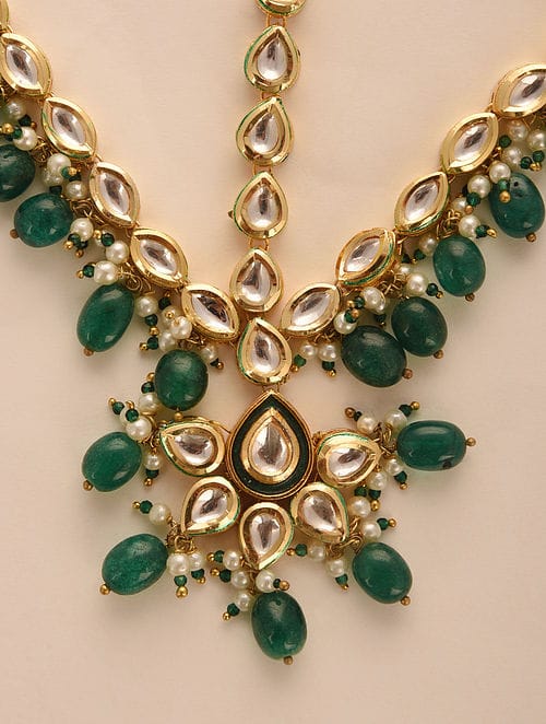 Exclusive Studded Gold Plated Headband With Enamel Work Traditional Bridal Matha Patti