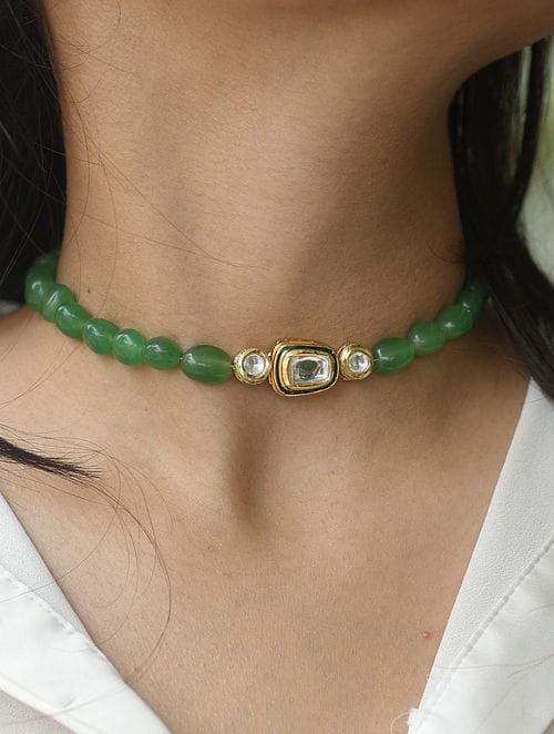 Green & White Stone Choker Set