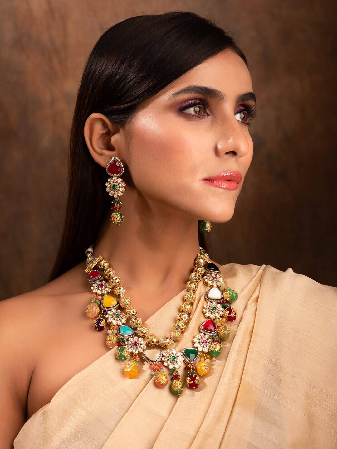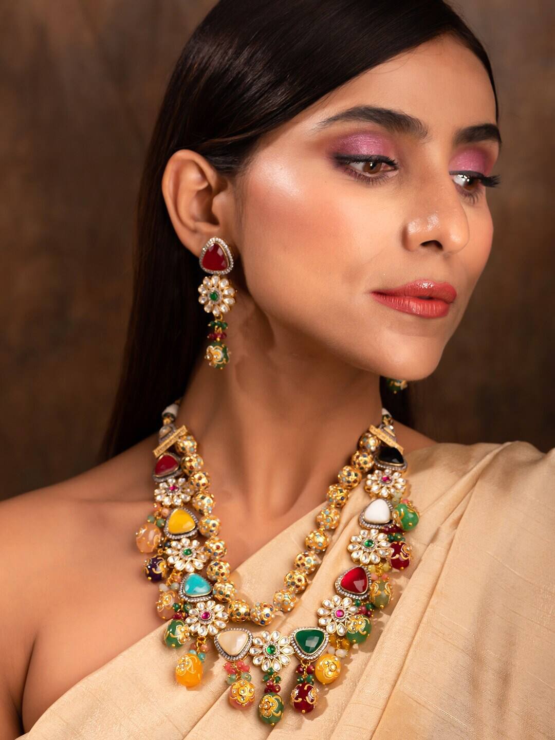 Heavy Meenakari Kundan With Emarald Green Drop Stone Necklace