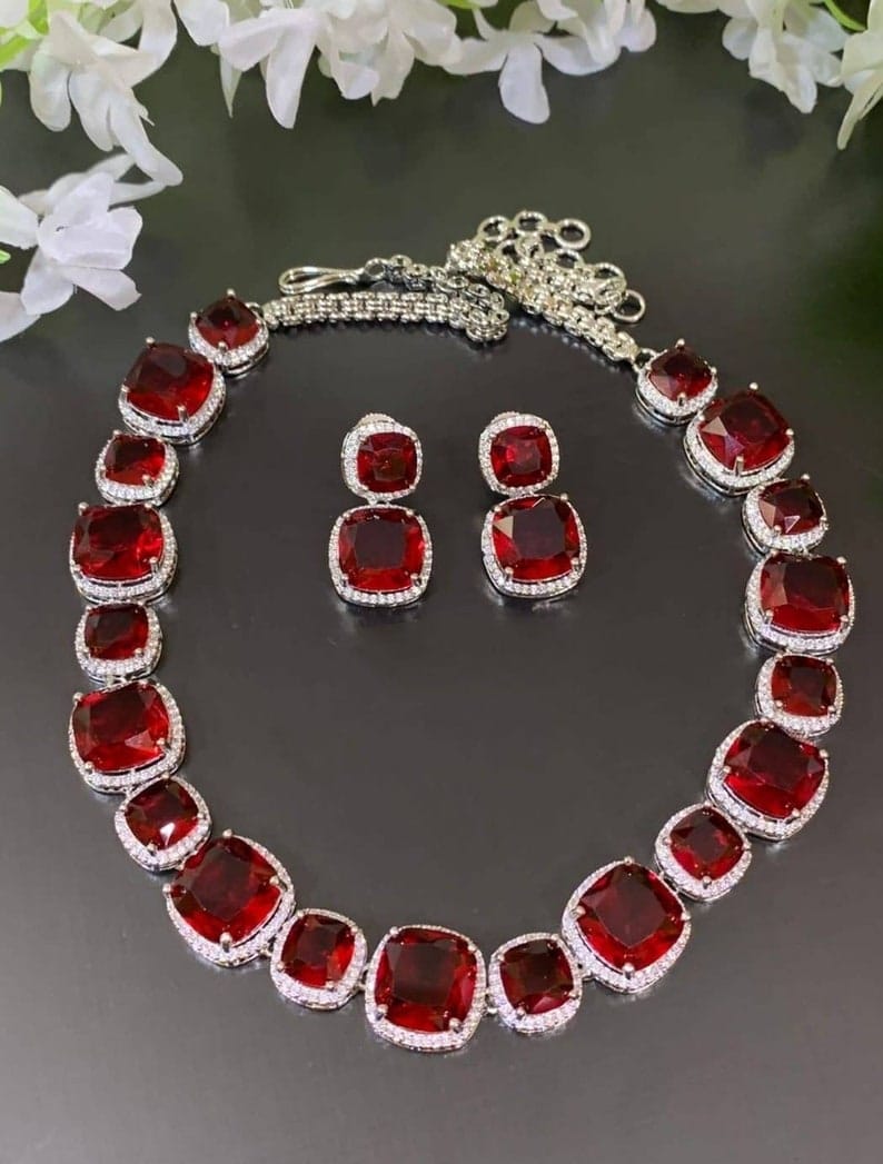 Victorian Uncut Polki Faux Diamond Necklace & Earring Set