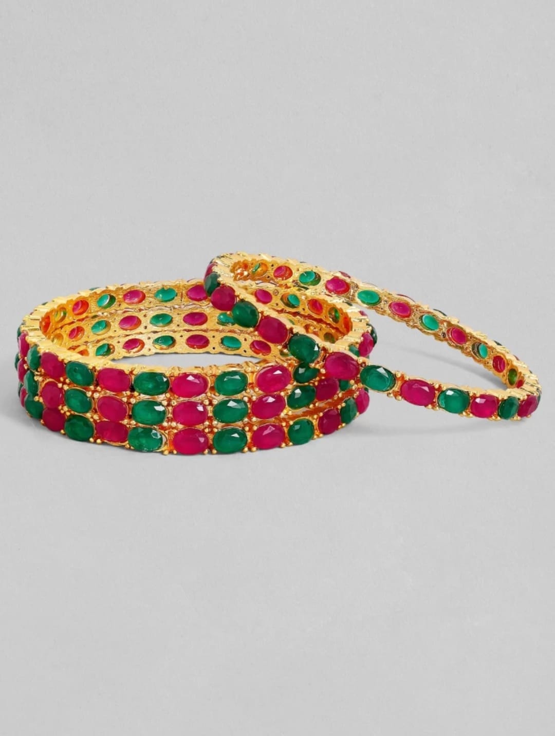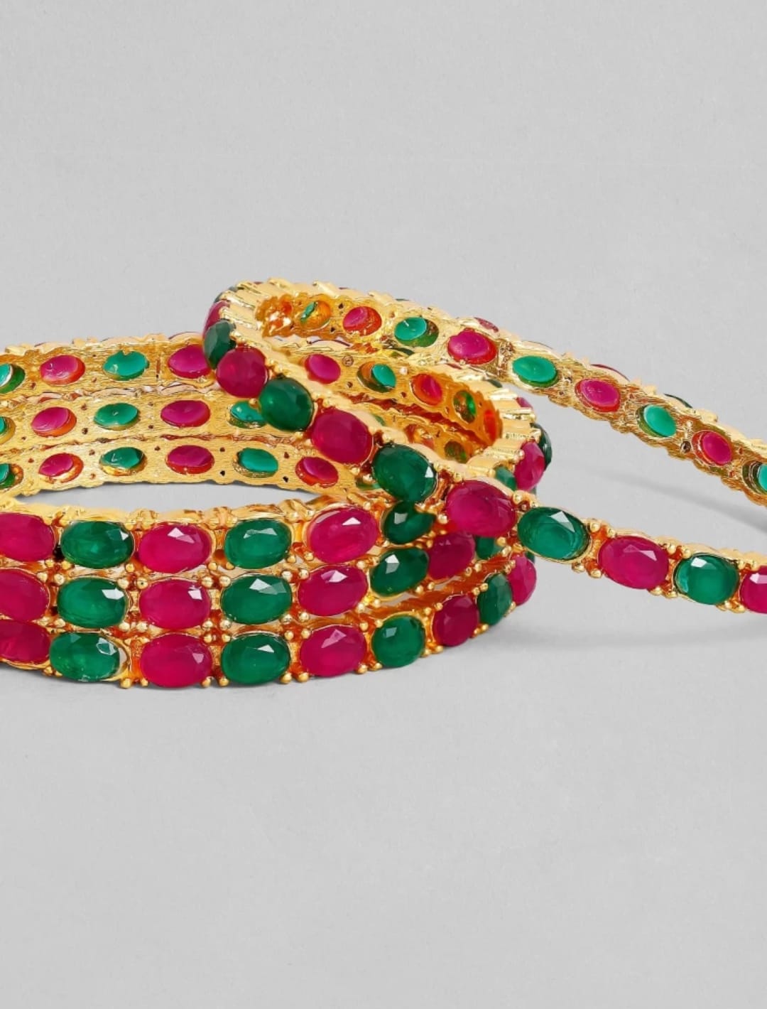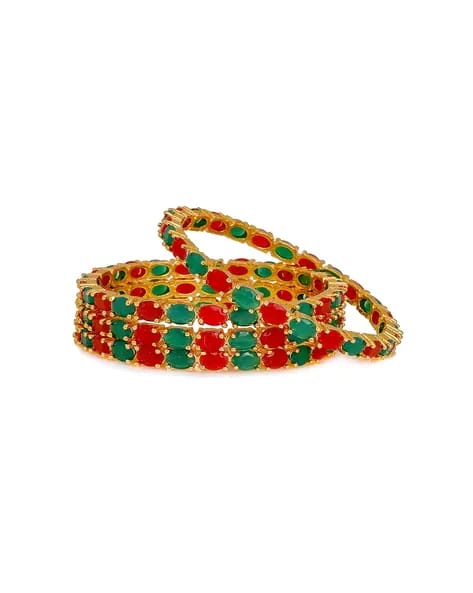 Be the first to review “22K Gold-Plated Pink & Green Stone-Studded Sustainable Handcrafted Bangles (Set Of 4)” Cancel reply