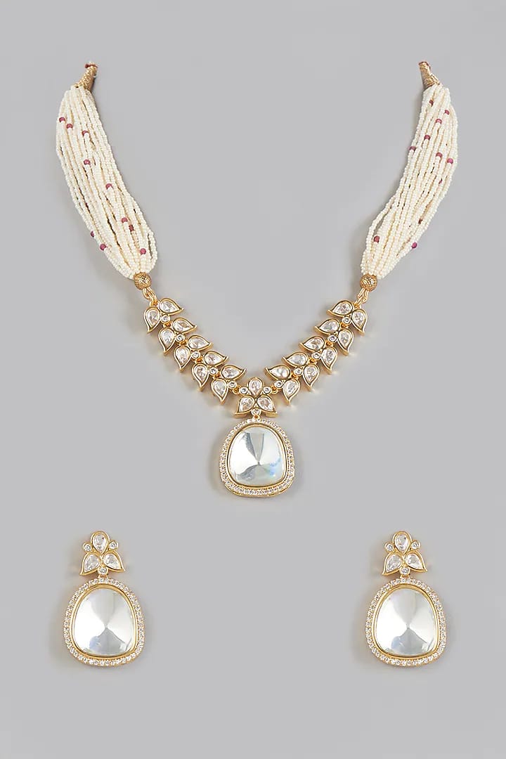 Gold-Plated Kundan-Studded & Beaded Nacklace