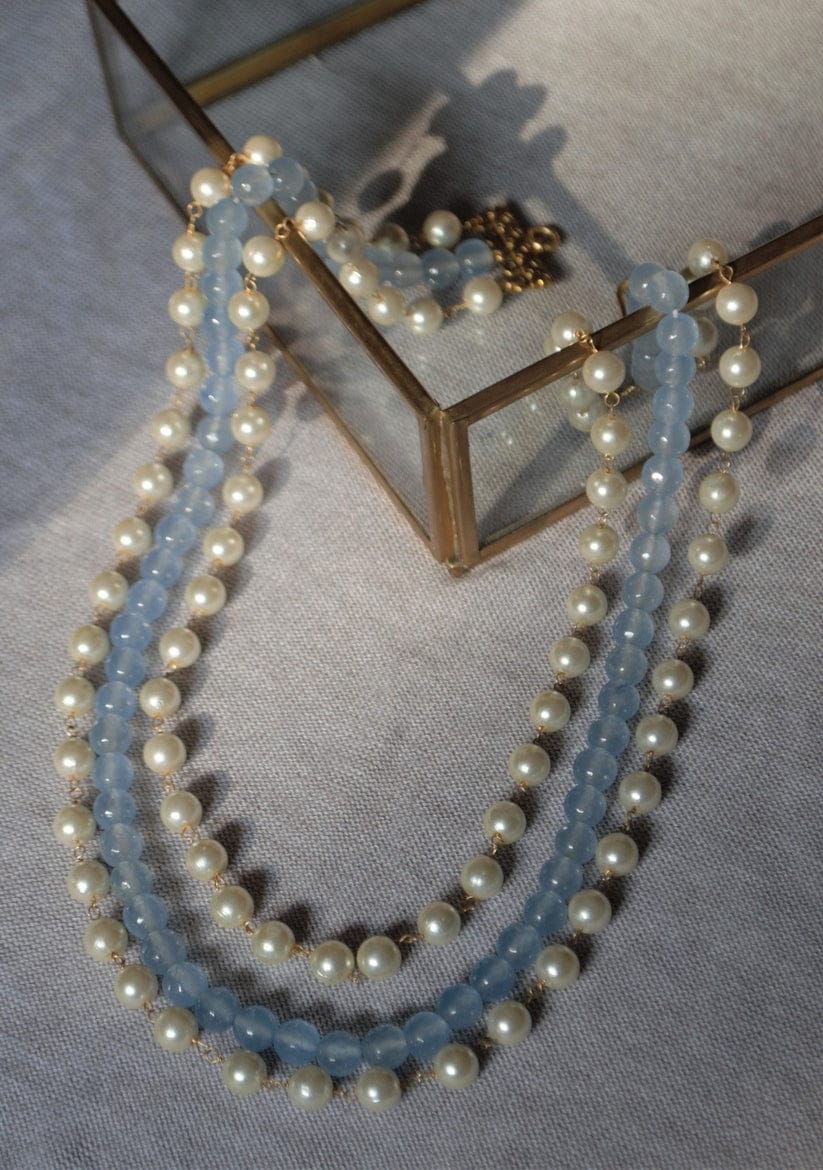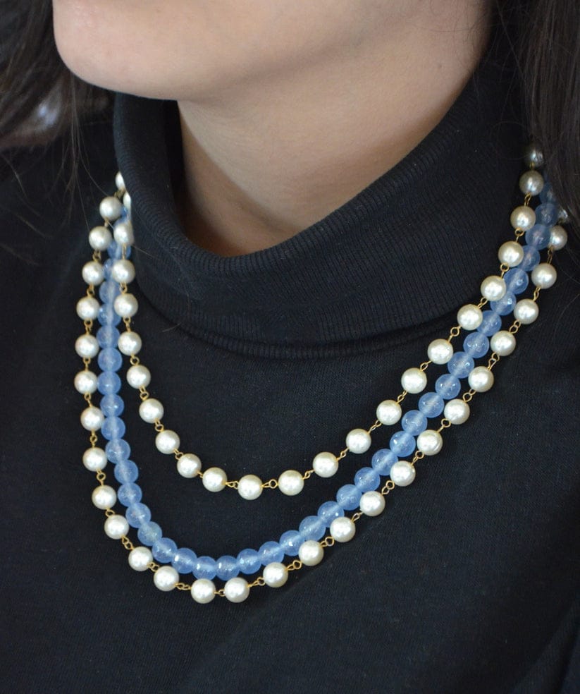 Green Fresh Water Pearls Stones Embellished Multi Layered Necklace