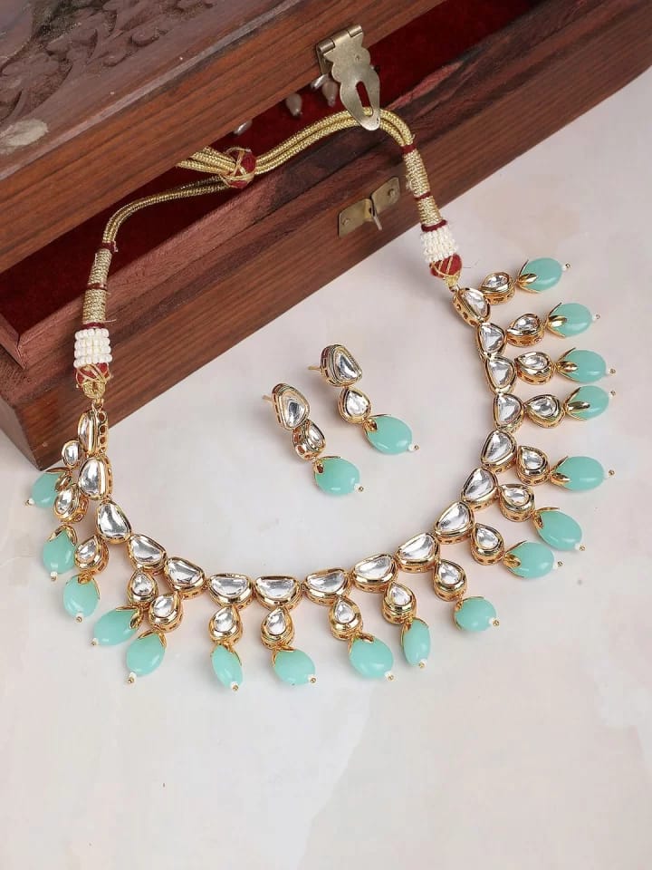 Be the first to review “Green Crystals, Stones Drop Embellished Choker Set”