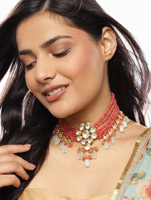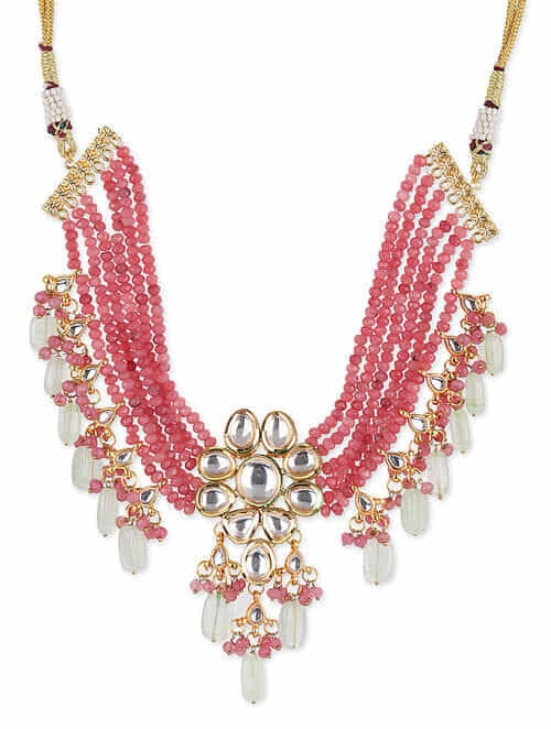 Gold-Plated Sparkling Jaipuri Beads Necklace