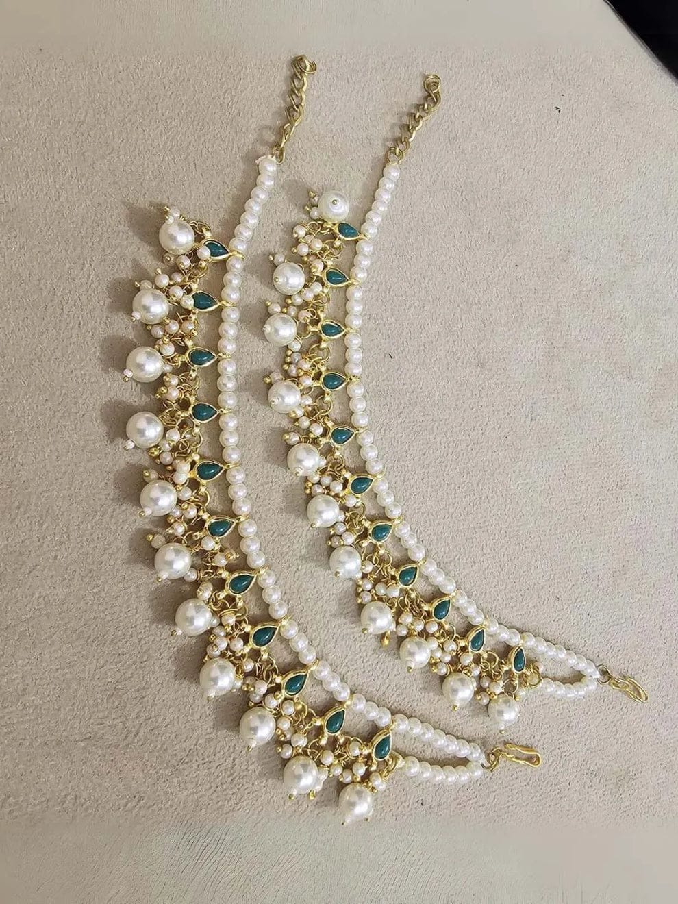 Be the first to review “Green Kundan And Pearl Beaded Ear Chain”