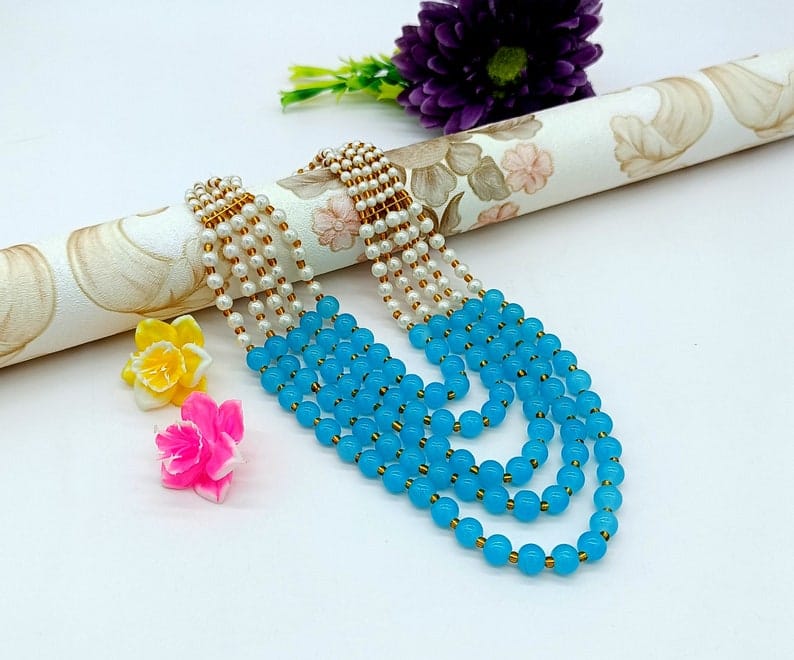 Gold-Plated Sparkling Jaipuri Beads Necklace