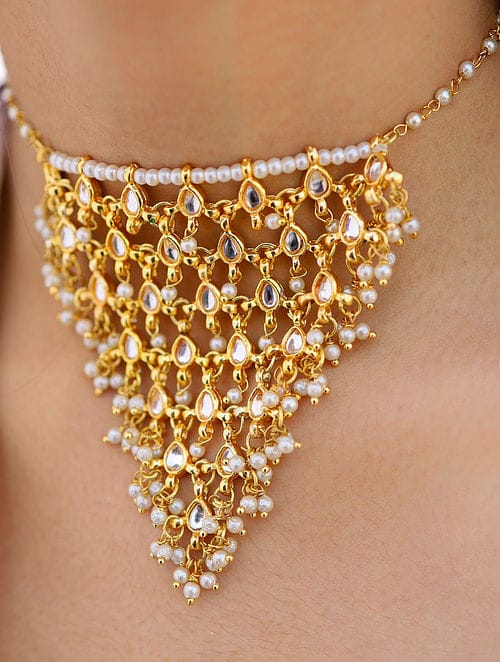 Gold Plated Ethnic Kundan Pearl Traditional Choker Necklace