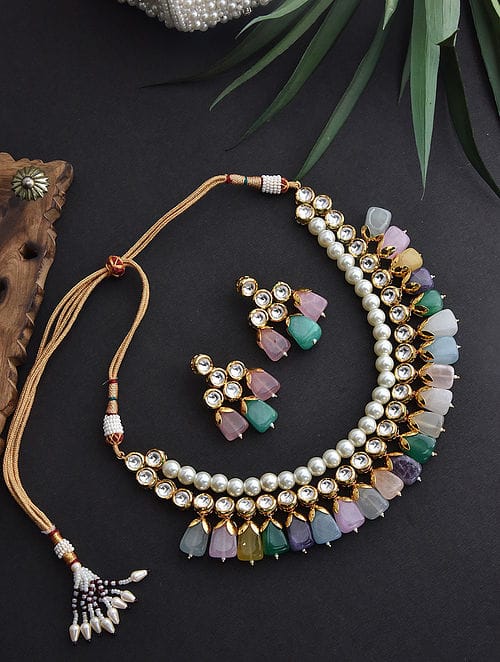 Gold-Plated Sparkling Jaipuri Beads Necklace