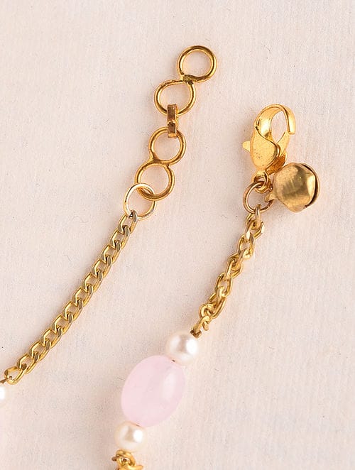 Gold Plated Pearl Studded Choker Necklace & Earrings Set