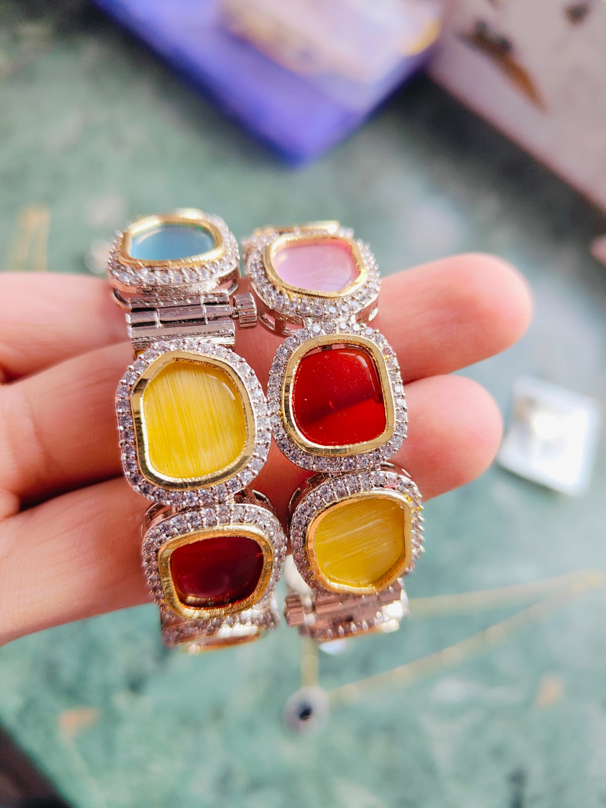 Be the first to review “High End Premium Quality Sabyasachi Inspired Uncut Polki Foil Kundan openable Bracelet” Cancel reply