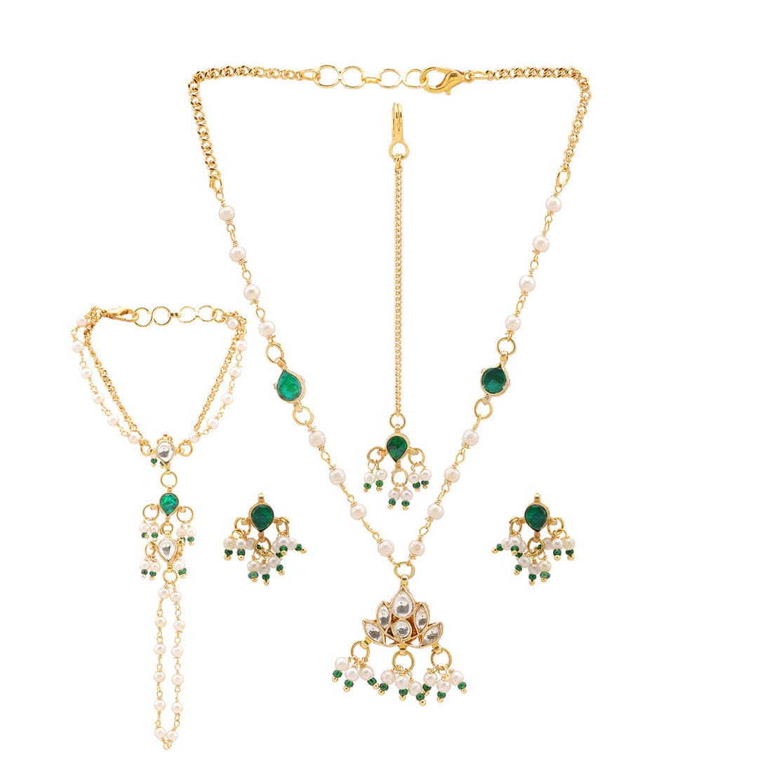 Exquisite Gold-Plated Kundan-Polki Choker Necklace Set