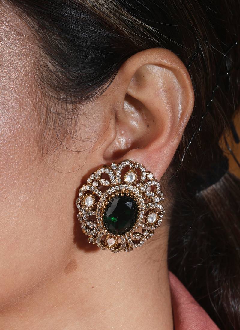Green Crystals, Stones Drop Embellished Choker Set