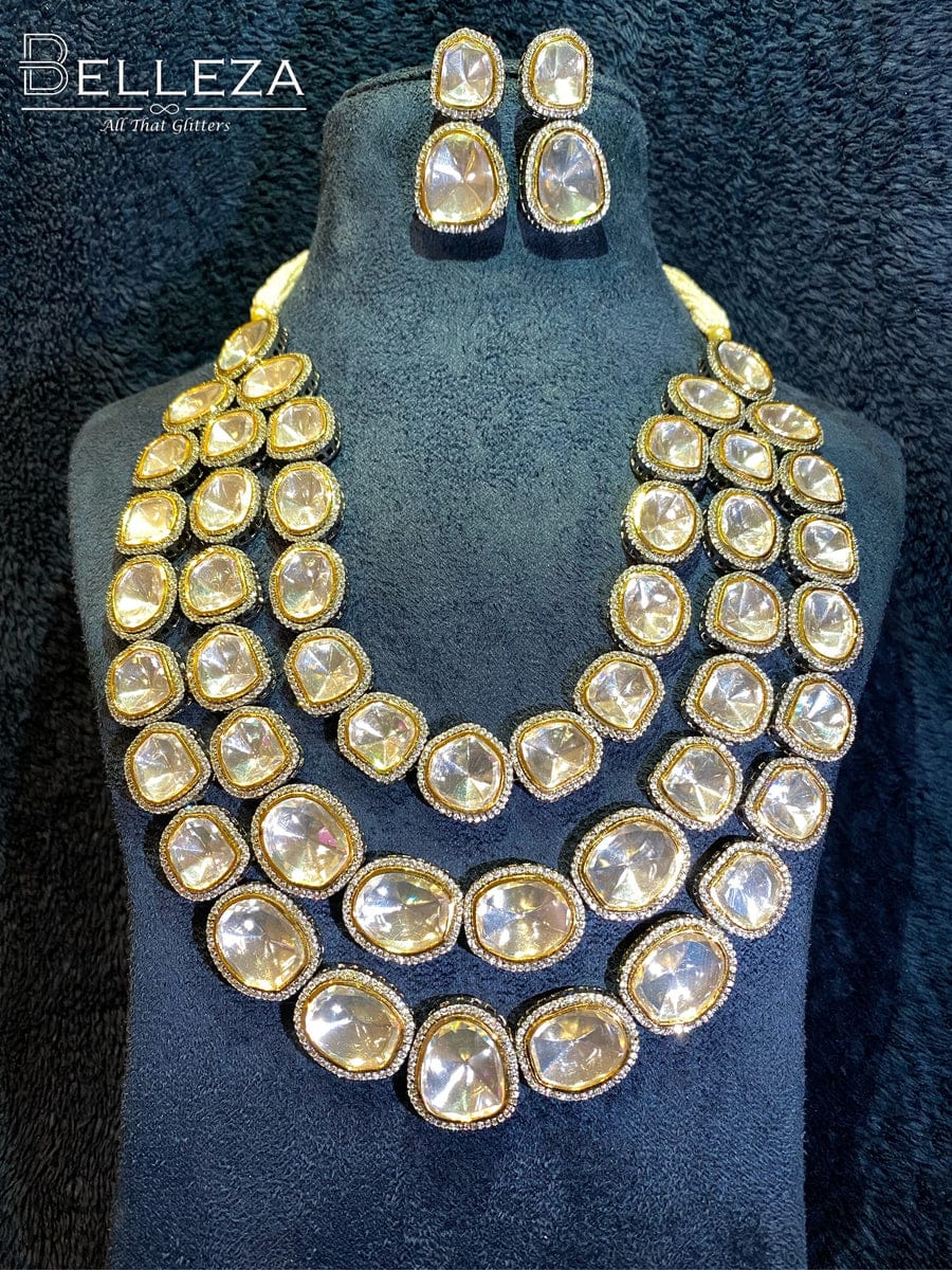 Victorian Uncut Polki Faux Diamond Necklace & Earring Set