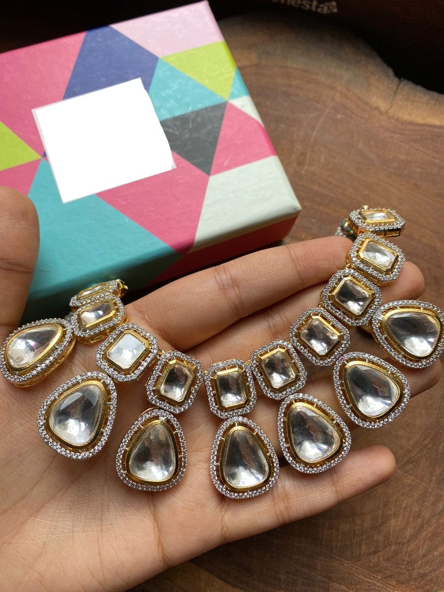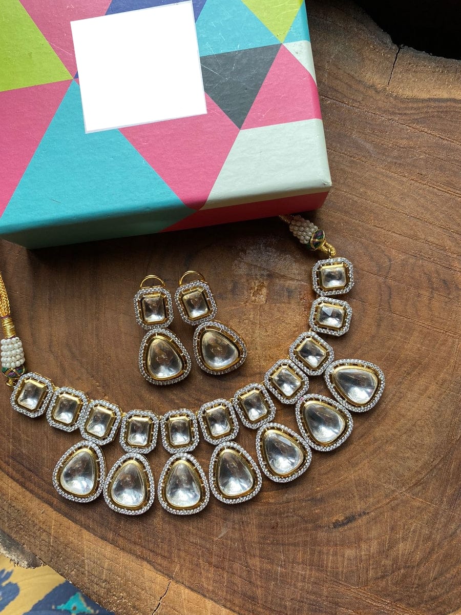 Victorian Uncut Polki Faux Diamond Necklace & Earring Set