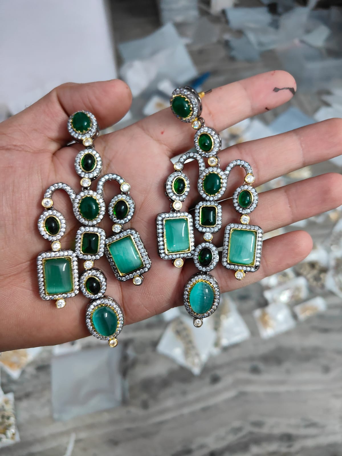 Sabyasachi Inspired Monalisa Stone And CZ Earrings