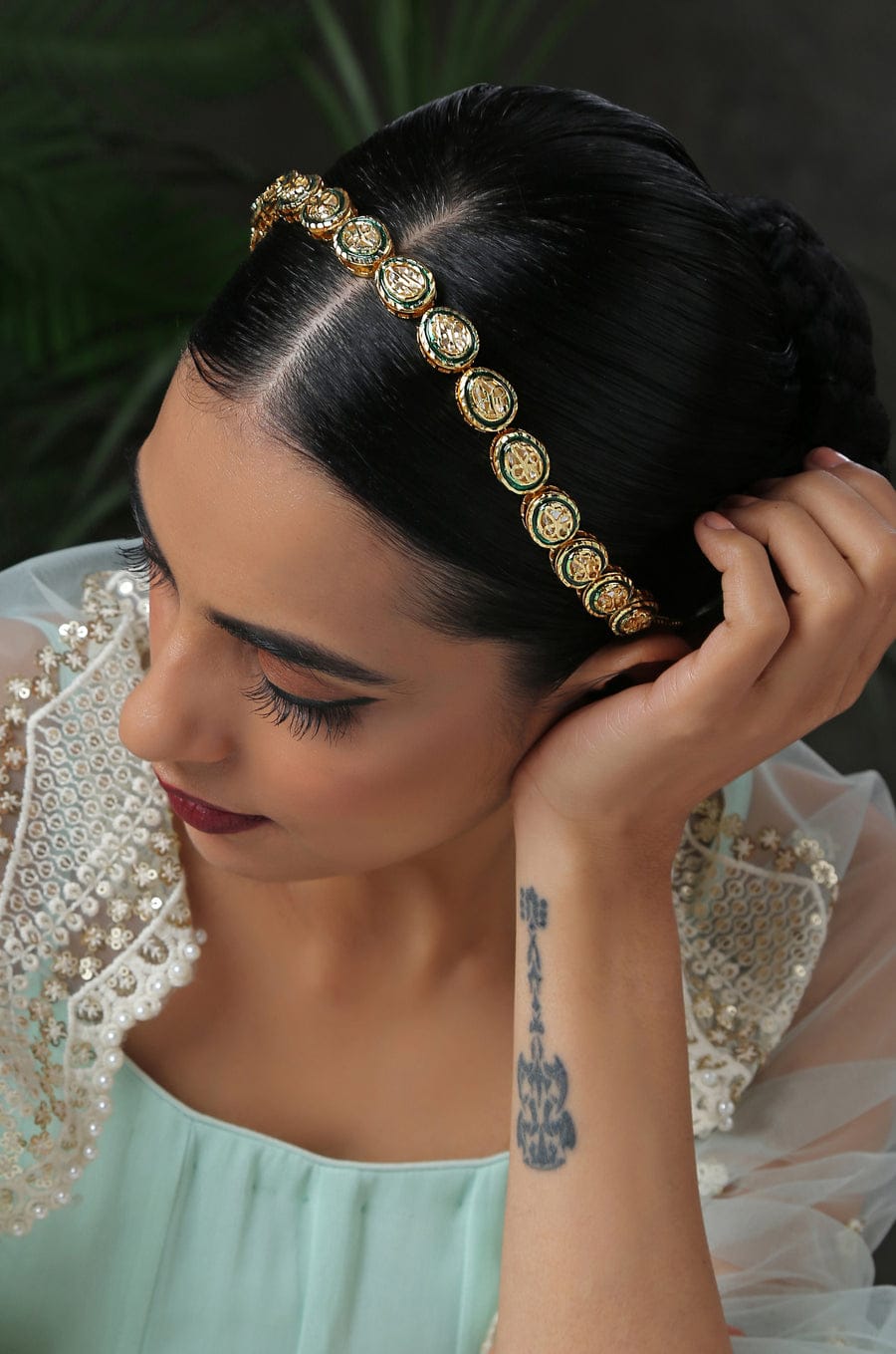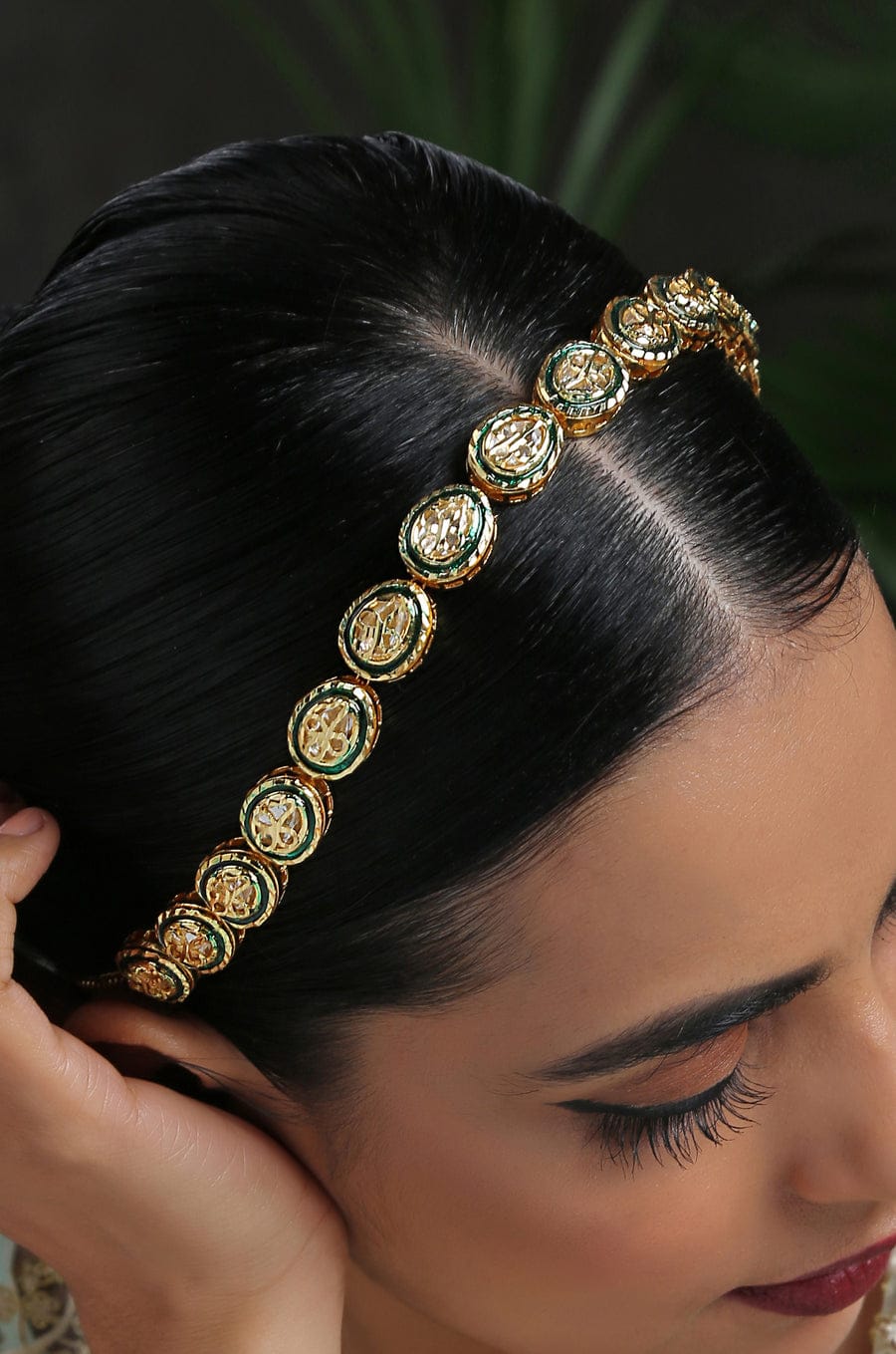 Exclusive Studded Gold Plated Headband With Enamel Work Traditional Bridal Matha Patti