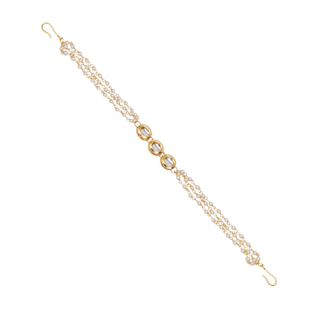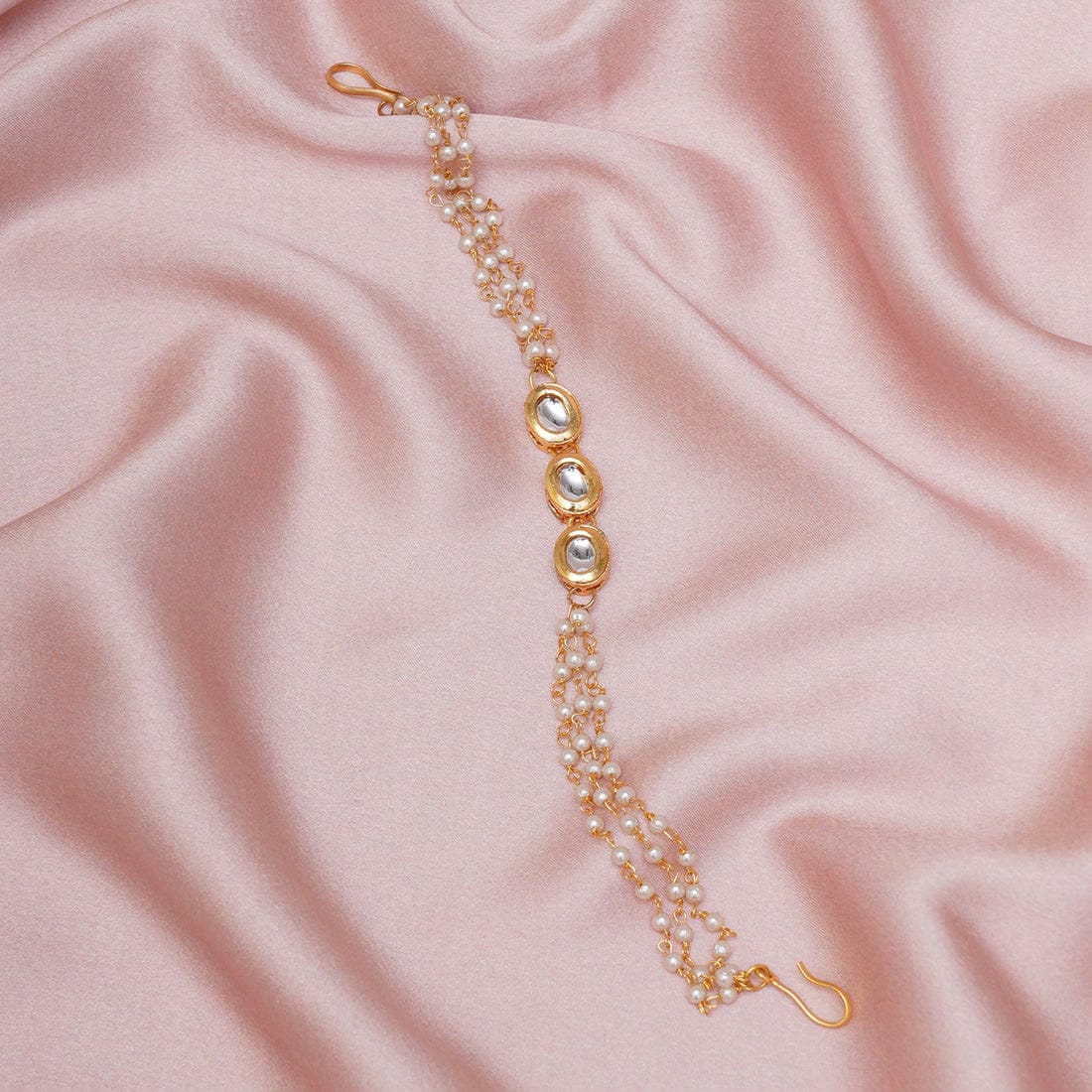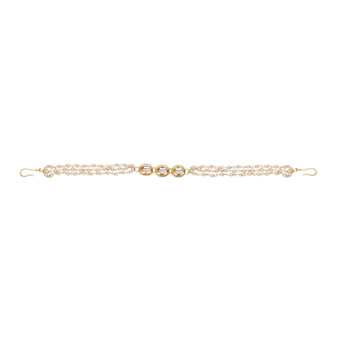 Gold Finish Moissanite Polki & Pearl Maangtikka