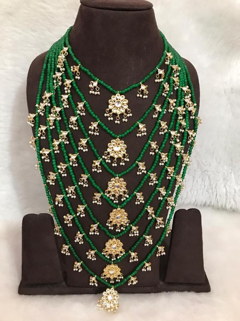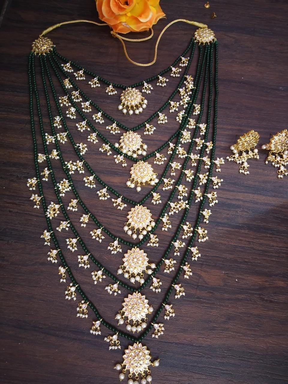 Heavy Meenakari Kundan With Emarald Green Drop Stone Necklace