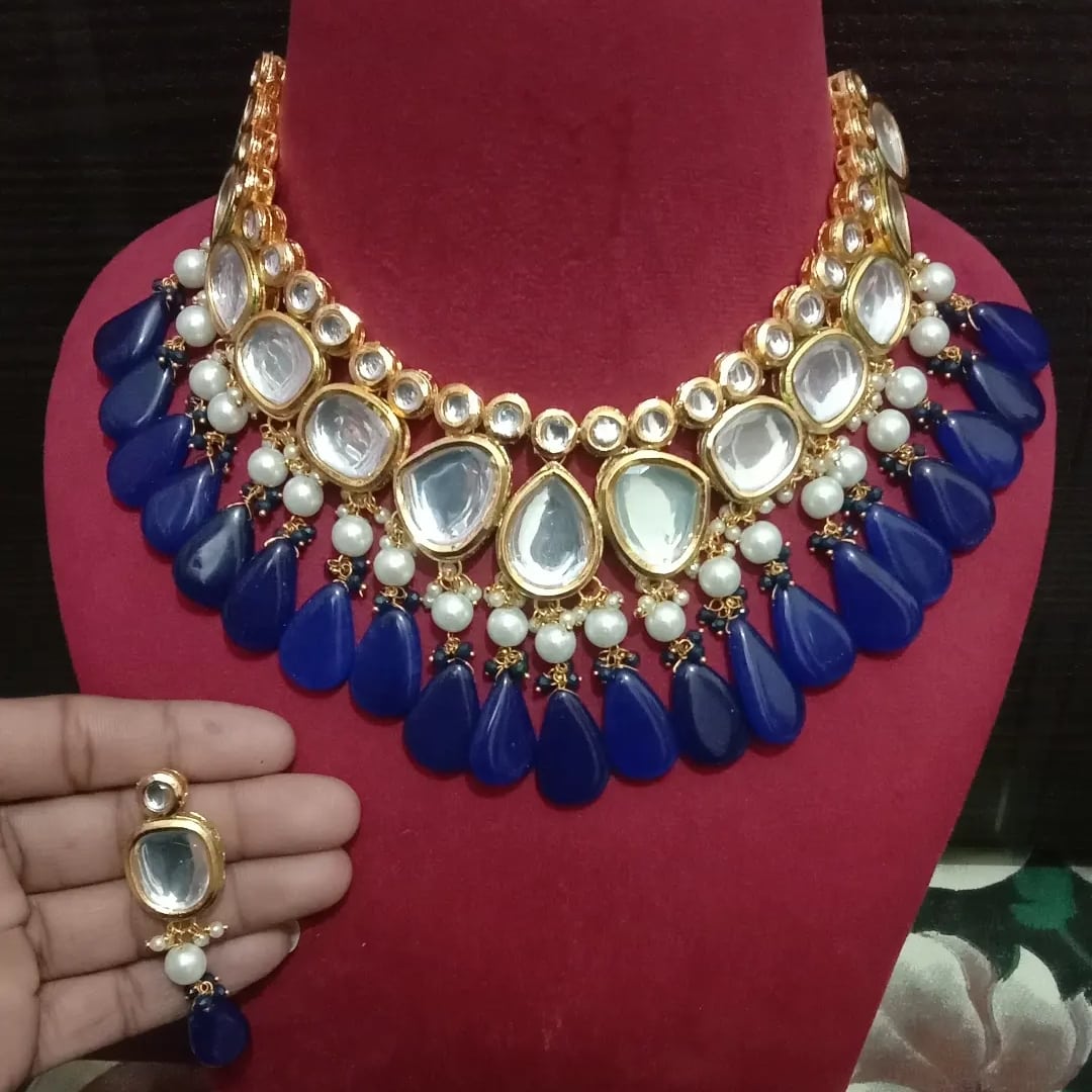Gold Plated Stones Studded & Beaded Jewellery Set