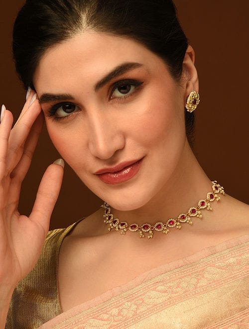 Gold-Plated Kundan-Studded & Beaded Nacklace