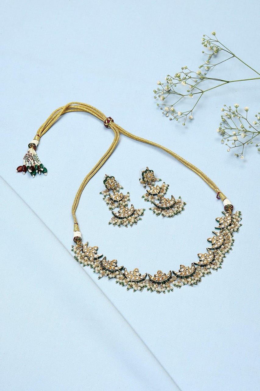 Green & White Stone Choker Set