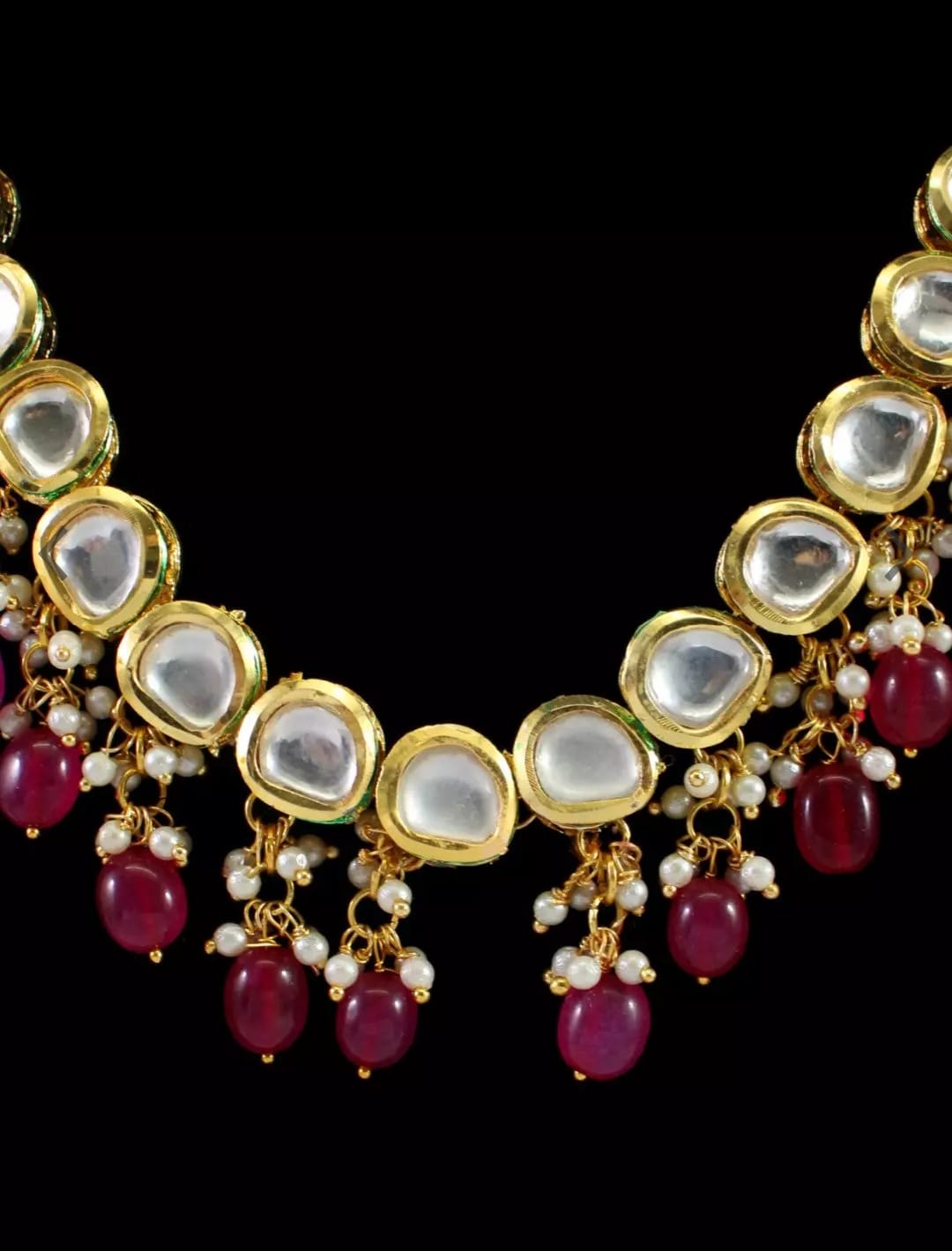 Gold-Plated Kundan-Studded & Beaded Nacklace