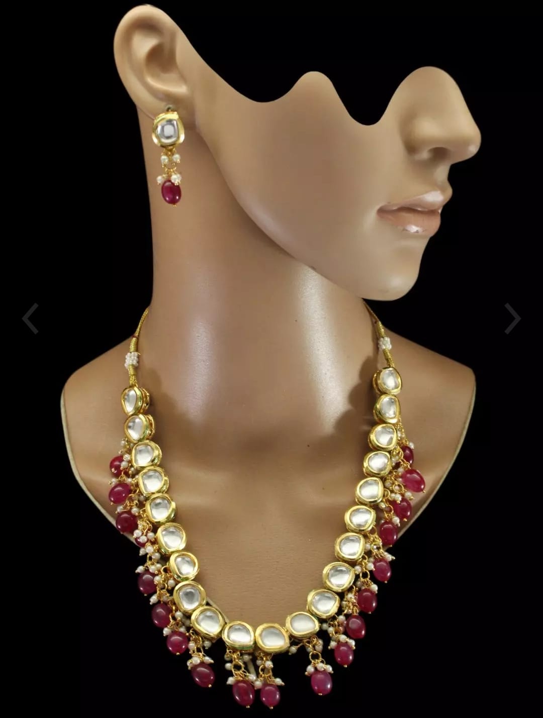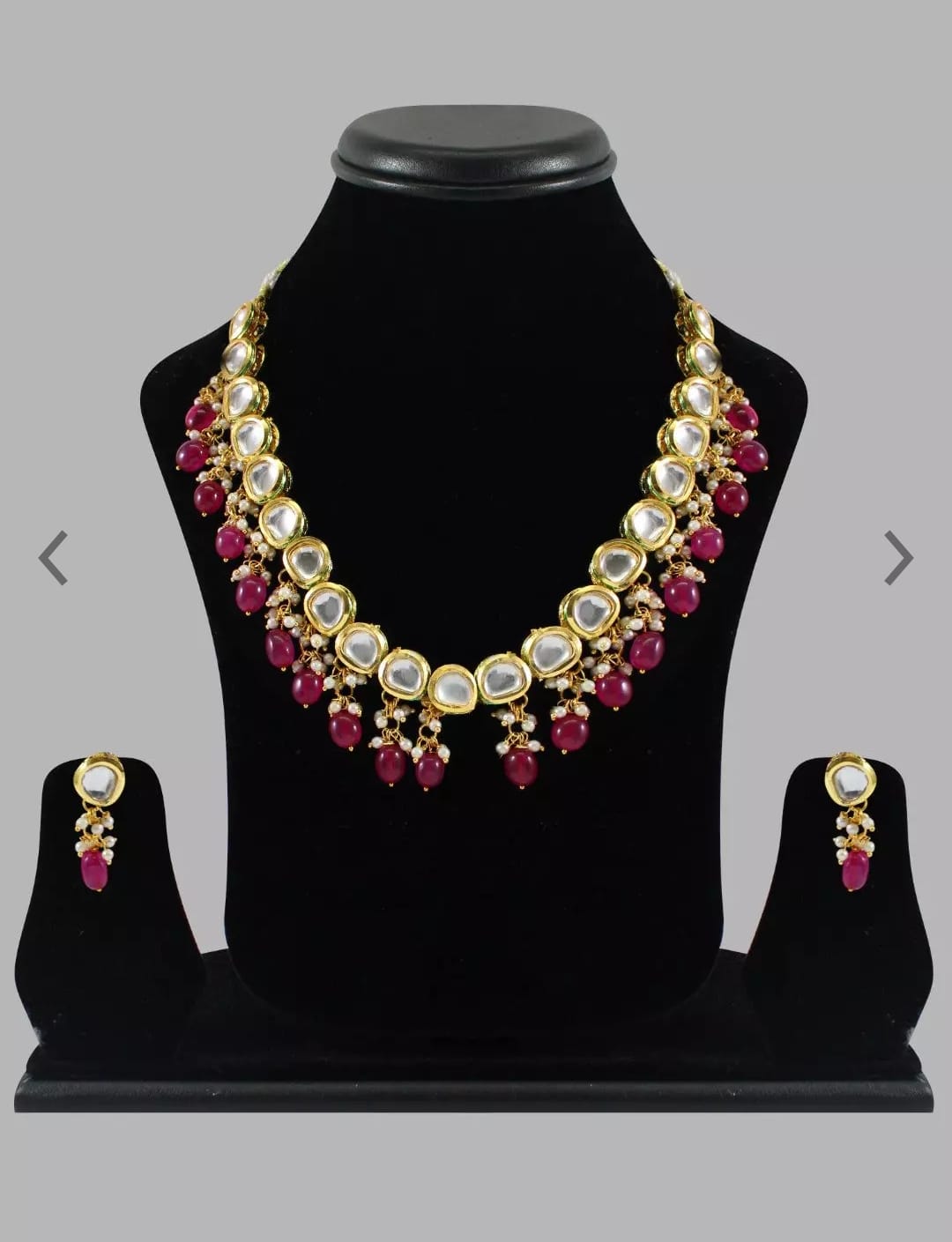 Gold Plated Stones Studded & Beaded Jewellery Set