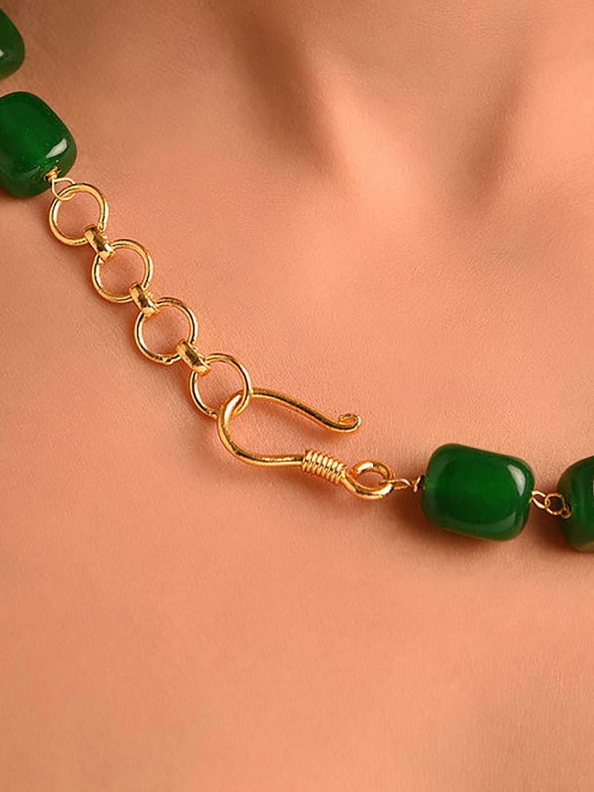 Gold Plated Stones Studded & Beaded Jewellery Set