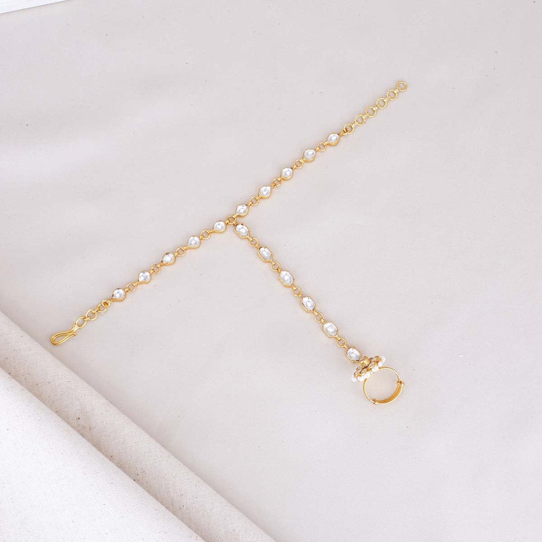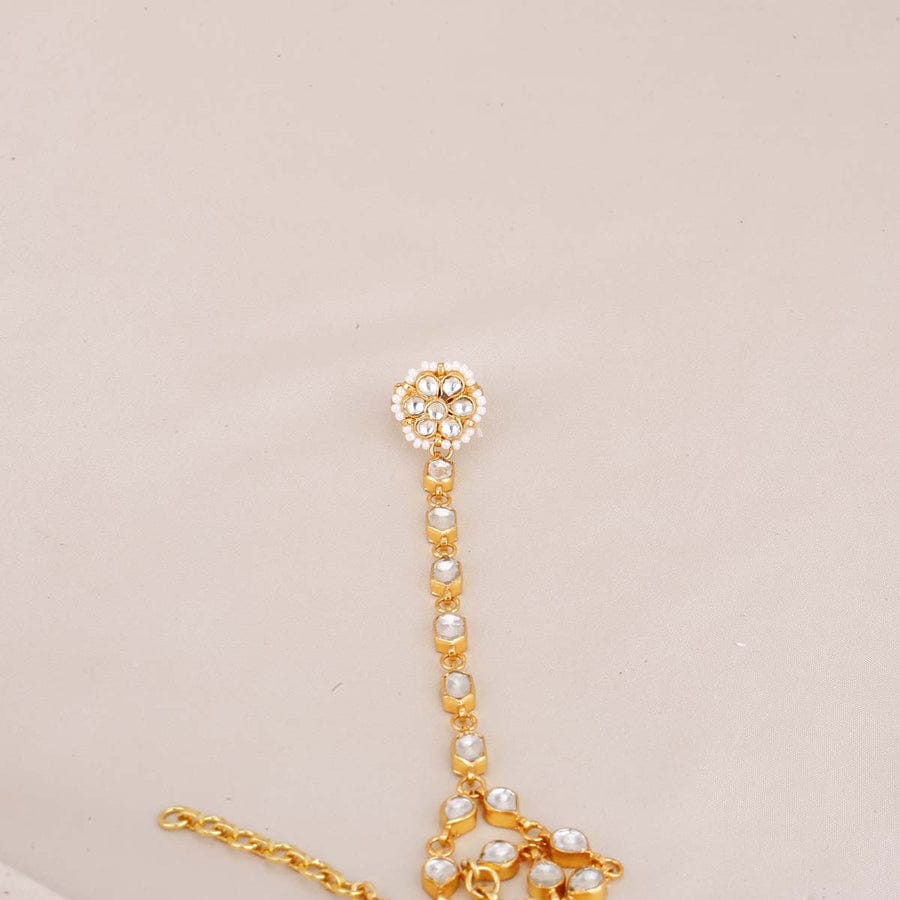 Gold Plated Kundan Single Lined Hathphool – Set Of 2