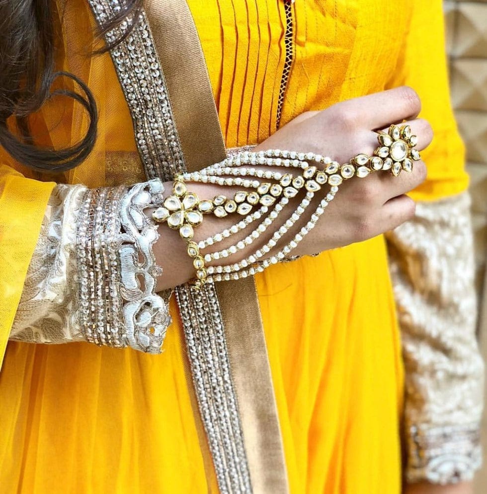 Be the first to review “Gold Plated Kundan Multi Lined Hathphool – Set Of 2” Cancel reply