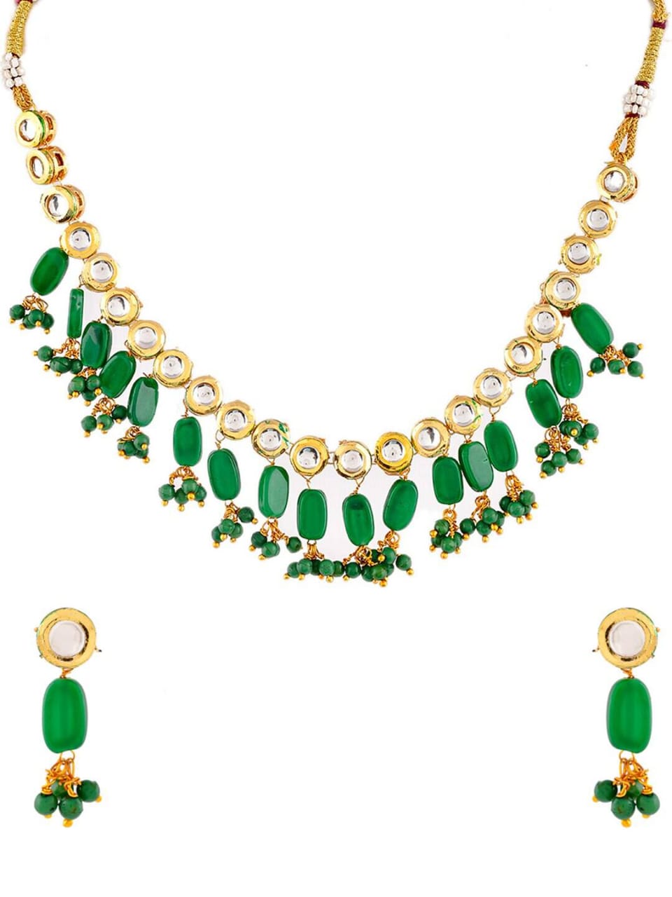 Gold Plated Stones Studded & Beaded Jewellery Set