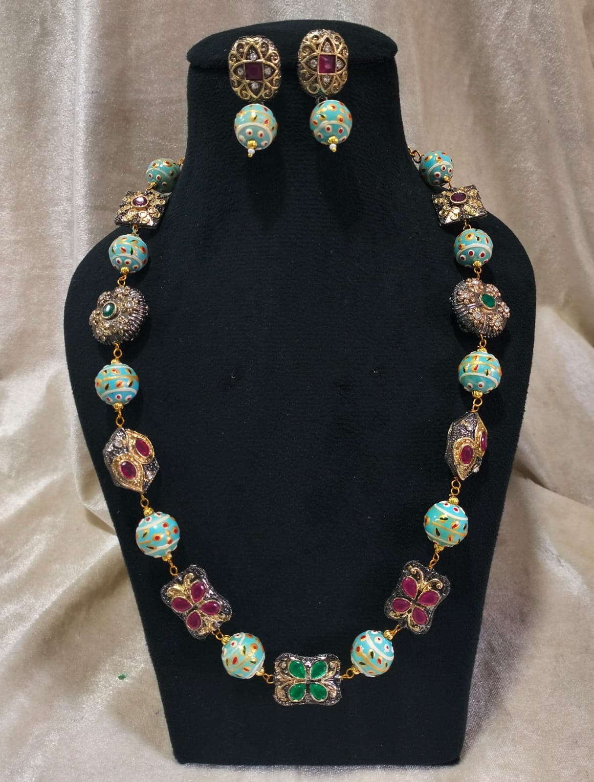Gold Plated Beads Victorian Polish Necklace with Earrings