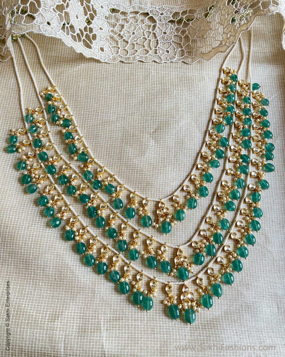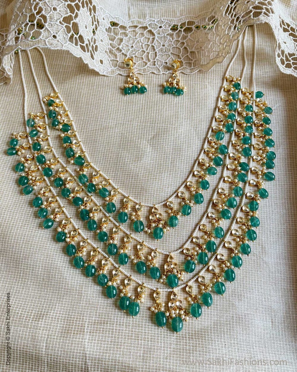 Green Fresh Water Pearls Stones Embellished Multi Layered Necklace