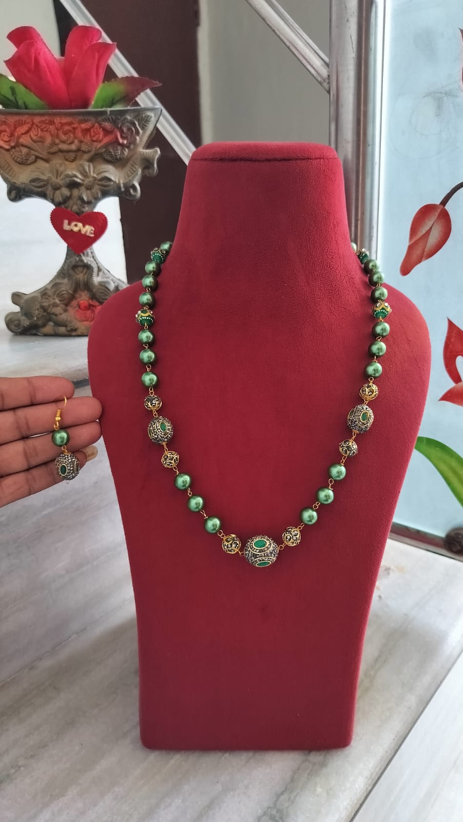 Gold-Plated Kundan-Studded & Beaded Nacklace