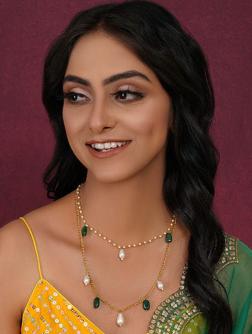 Gold Plated Stones Studded & Beaded Jewellery Set