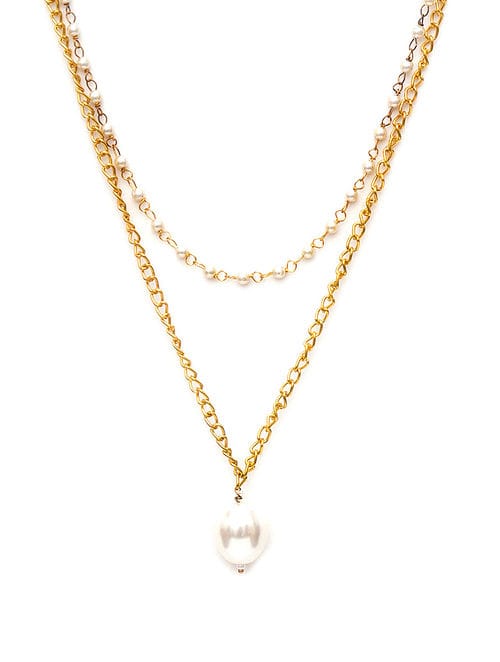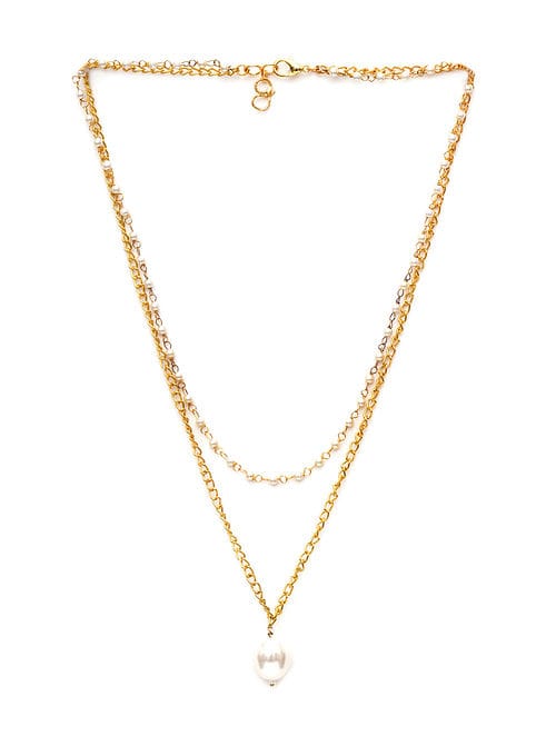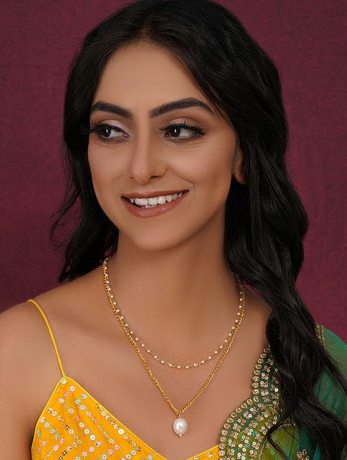 Green Fresh Water Pearls Stones Embellished Multi Layered Necklace