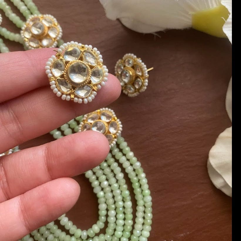 Victorian Uncut Polki Faux Diamond Necklace & Earring Set
