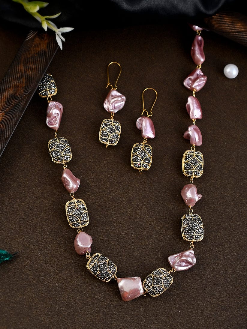 Gold Plated Stones Studded & Beaded Jewellery Set
