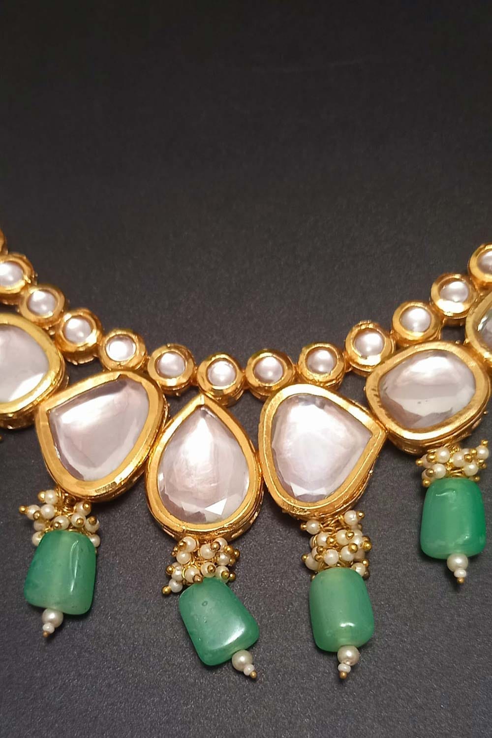 Gold-Plated Kundan-Studded & Beaded Nacklace