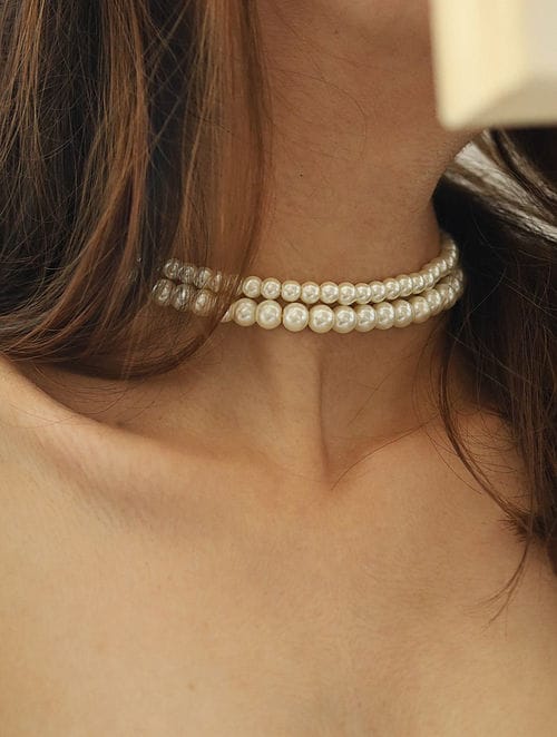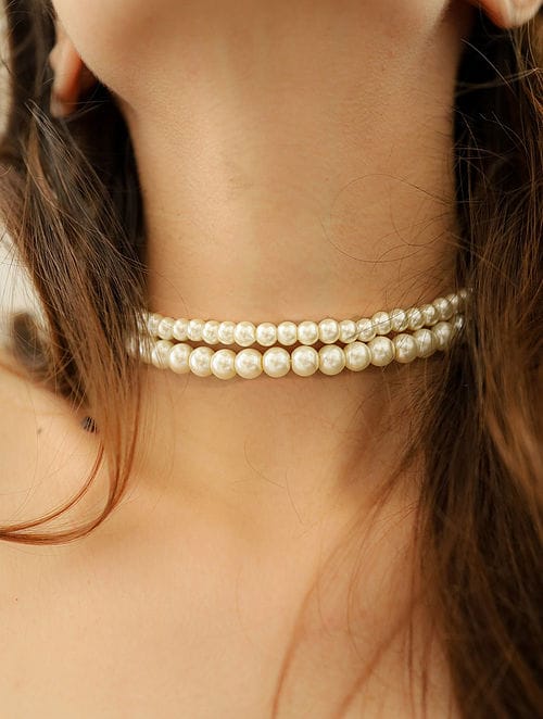Designer Pearl Beaded Kundan Choker Necklace With Earrings