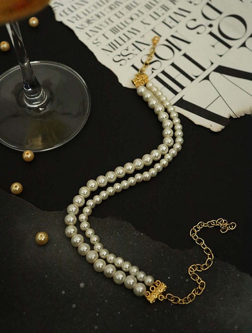 Green Fresh Water Pearls Stones Embellished Multi Layered Necklace