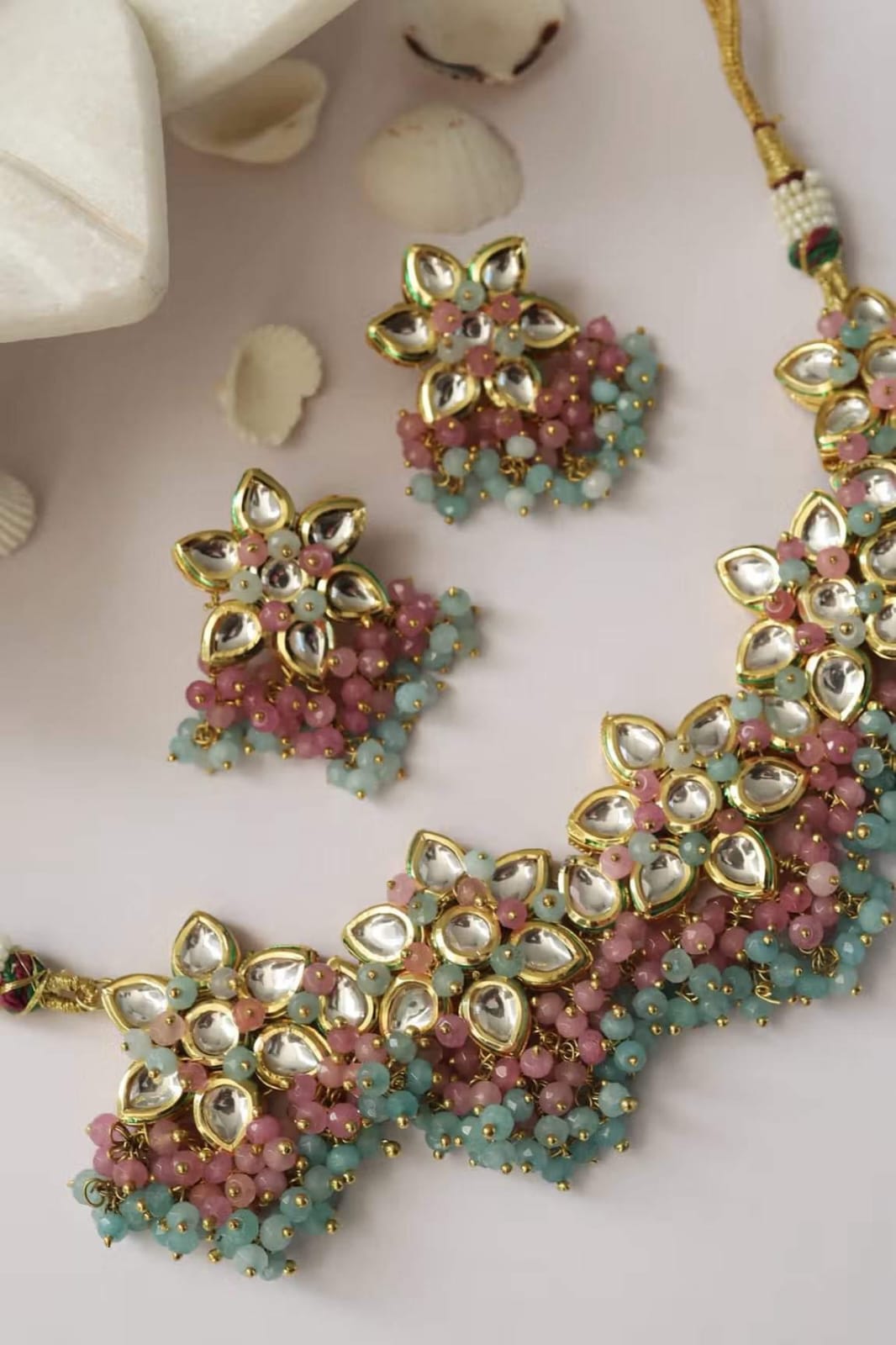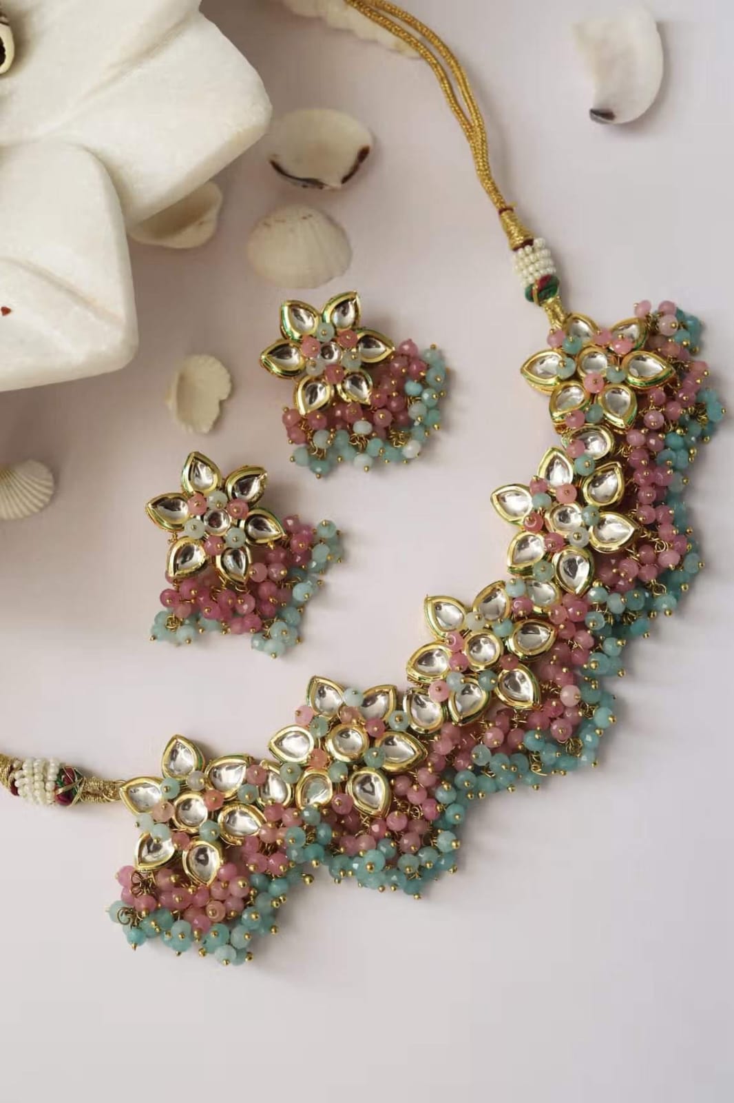 Gold-Plated Sparkling Jaipuri Beads Necklace