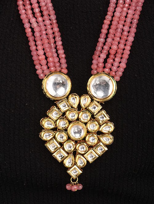 Gold-Plated Kundan-Studded & Beaded Nacklace