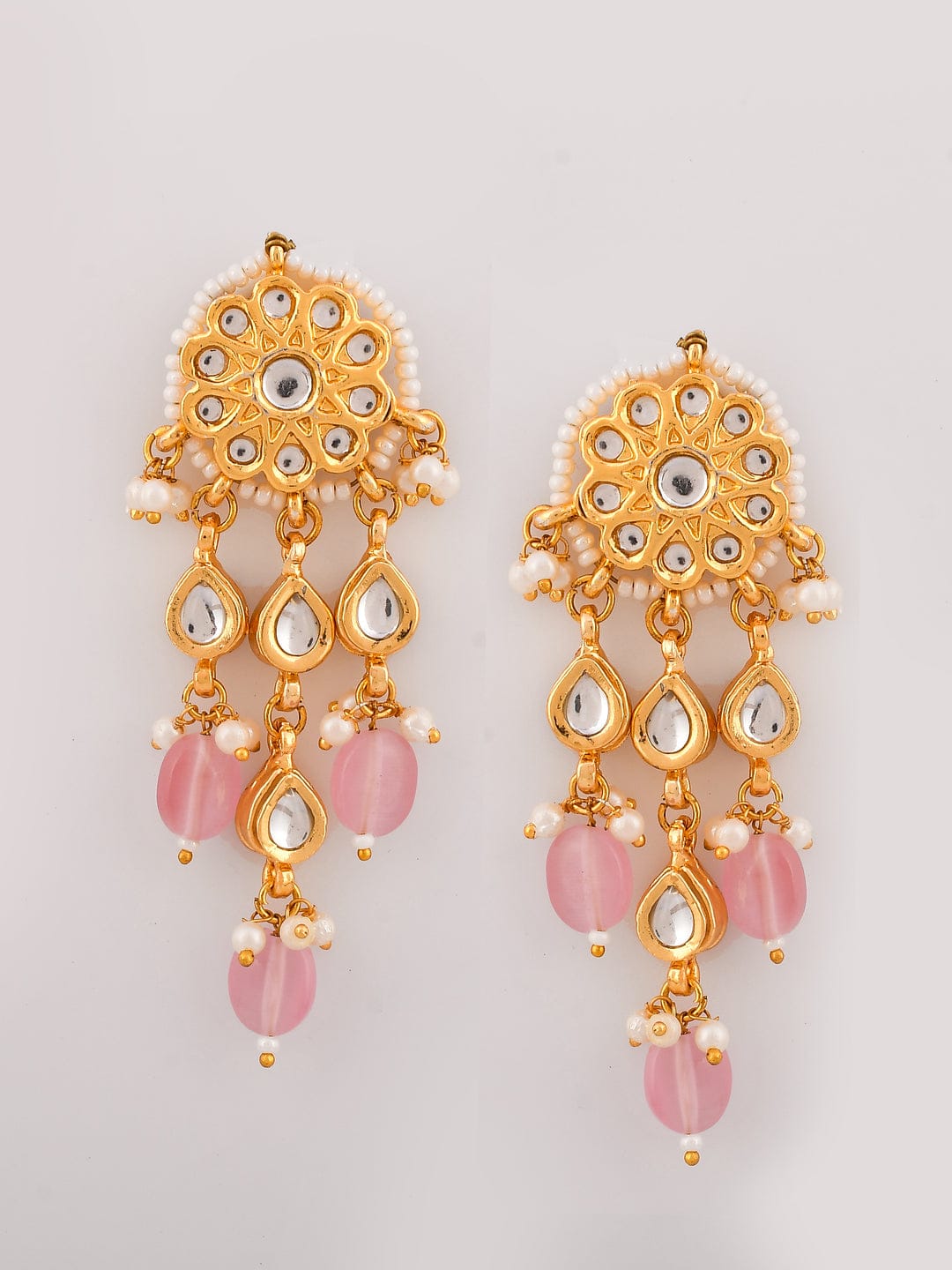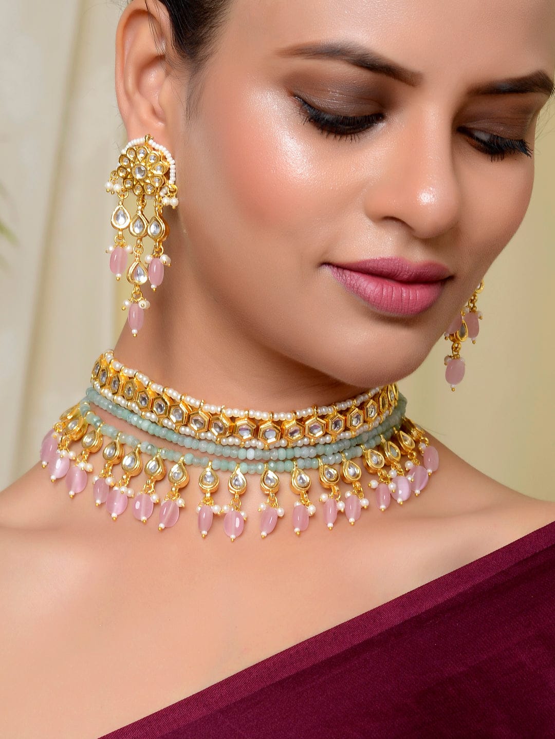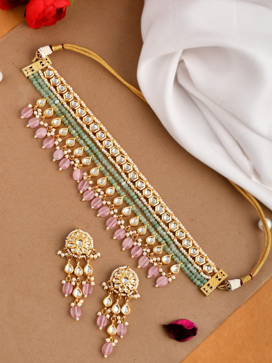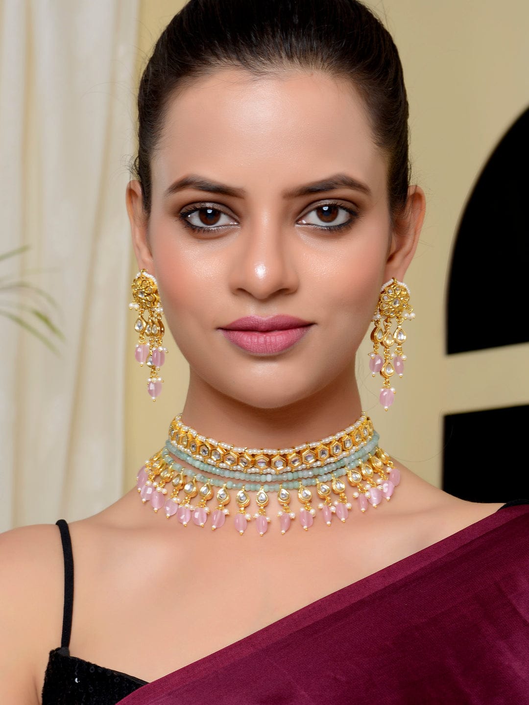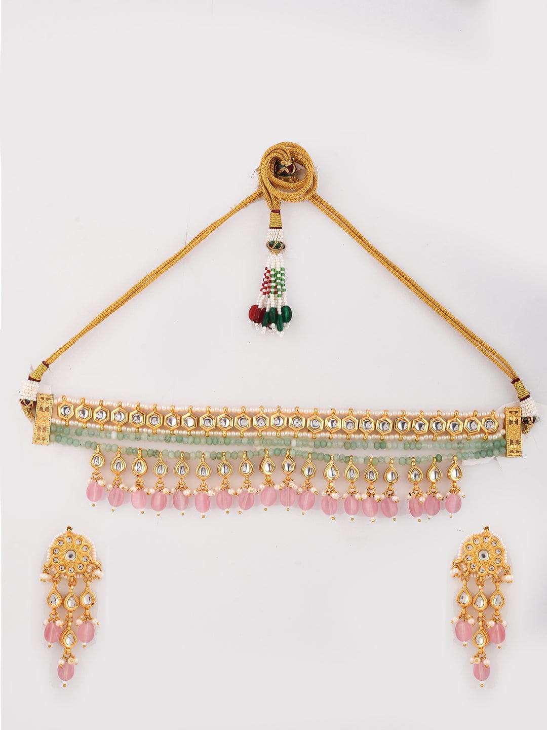 Designer Pearl Beaded Kundan Choker Necklace With Earrings