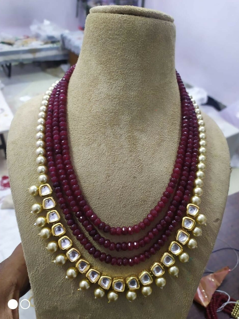 Gold Plated Stones Studded & Beaded Jewellery Set