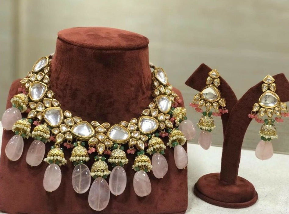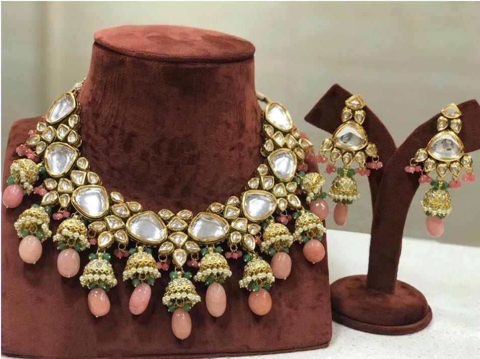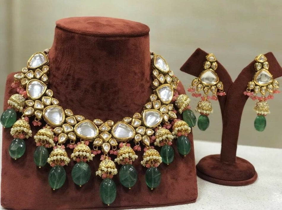 Gold Plated Stones Studded & Beaded Jewellery Set