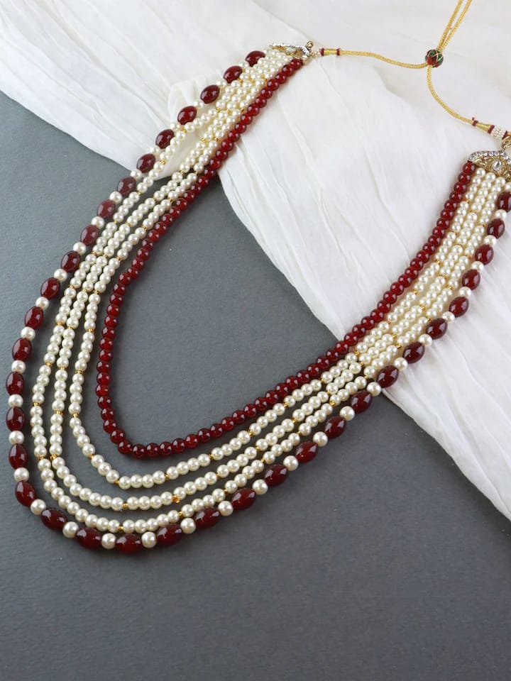 Men’s Gold-Plated White & Red Layered Groom Necklace