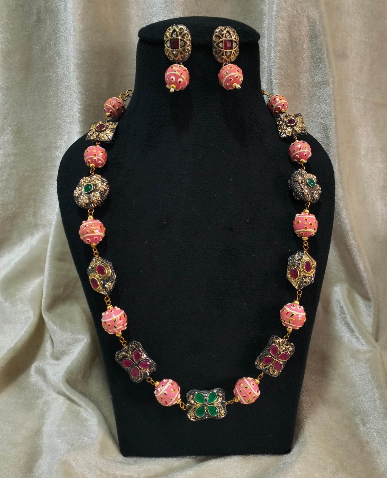 Gold Plated Beads Victorian Polish Necklace with Earrings