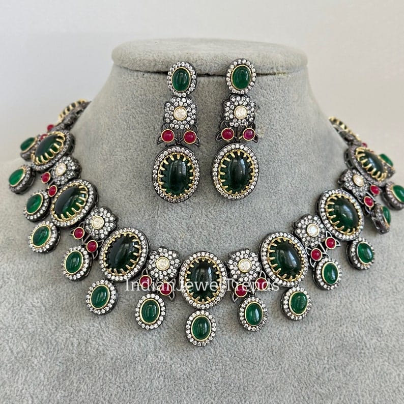 Gold Plated Beads Victorian Polish Necklace with Earrings